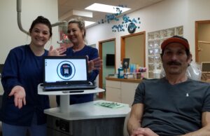 Today we are rolling out new practice management software.  You will notice that we now have laptops at every treatment chair and a wall-mounted monitor in the consultation room.  We’re feeling very high-tech right now!!  (Dr. C may be feeling a bit overwhelmed…  but Dr. Oakley (and her computer scientist husband, Will) are here to help get him transferred off of paper)